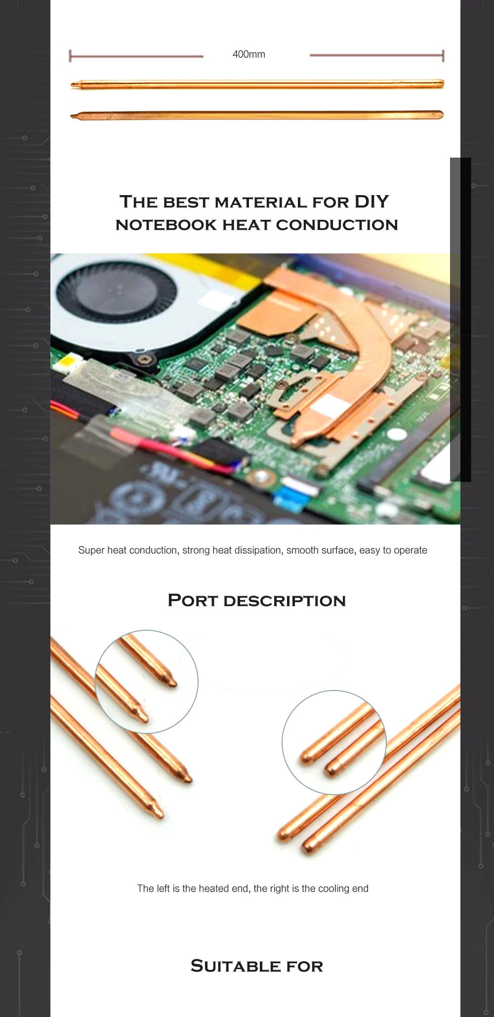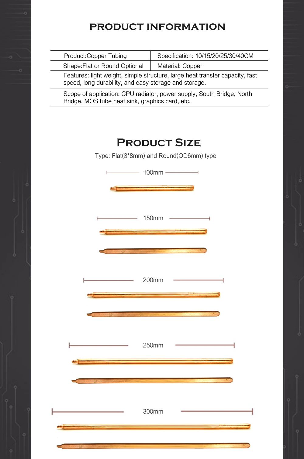 Comprar Tubo de calor de cobre puro para ordenador portátil, refrigeración para Notebook, GPU, plano o redondo, 100mm-400mm opcional
