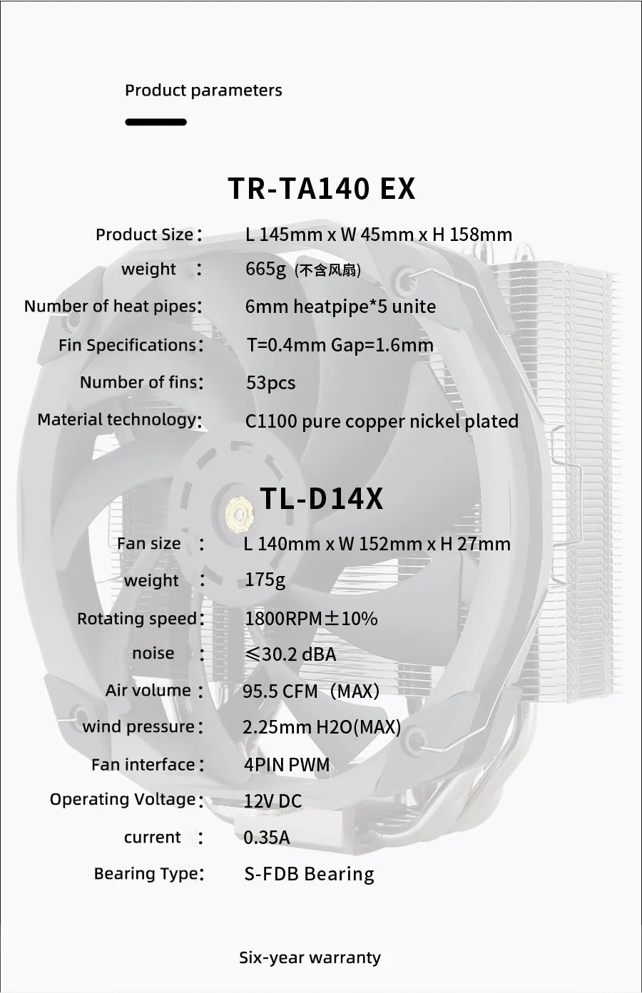 Comprar Tubo de calor térmico para CPU, radiador de una sola torre para LGA2011 2066 115X AMD AM4, TR-TA140 EX AGHP contra la gravedad 5
