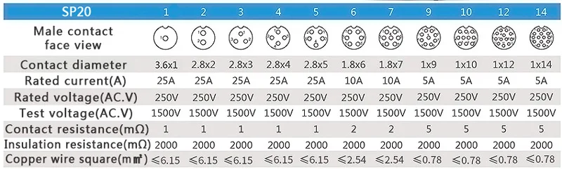 Parámetro de especificaciónMaterial de la carcasa: Termoplástico PA66Aislante: Termoplástico PPS resistente a altas temperaturas 260Material de contacto: cobre (chapado en oro, plateado)Anillo de sellado: gel de síliceGénero de la carcasa: asiento femenino MasculinoConexión: Conexión de roscaTemperatura de funcionamiento: -25 grados C ~ 110 grados CHumedad relativa: 90% ~ 95% (40 + 2 grados C)Sellado: En línea con IP68Diámetro del cable aplicable: diámetro 8,0 ~ 12,0mmVida mecánica: más de 500 veces