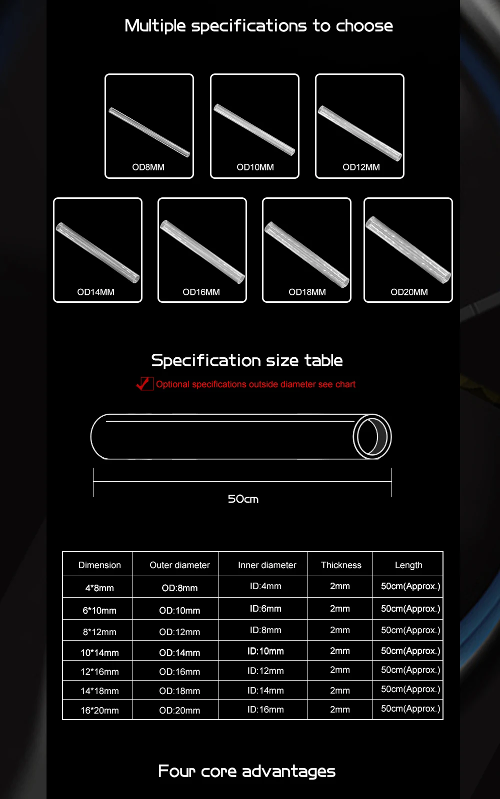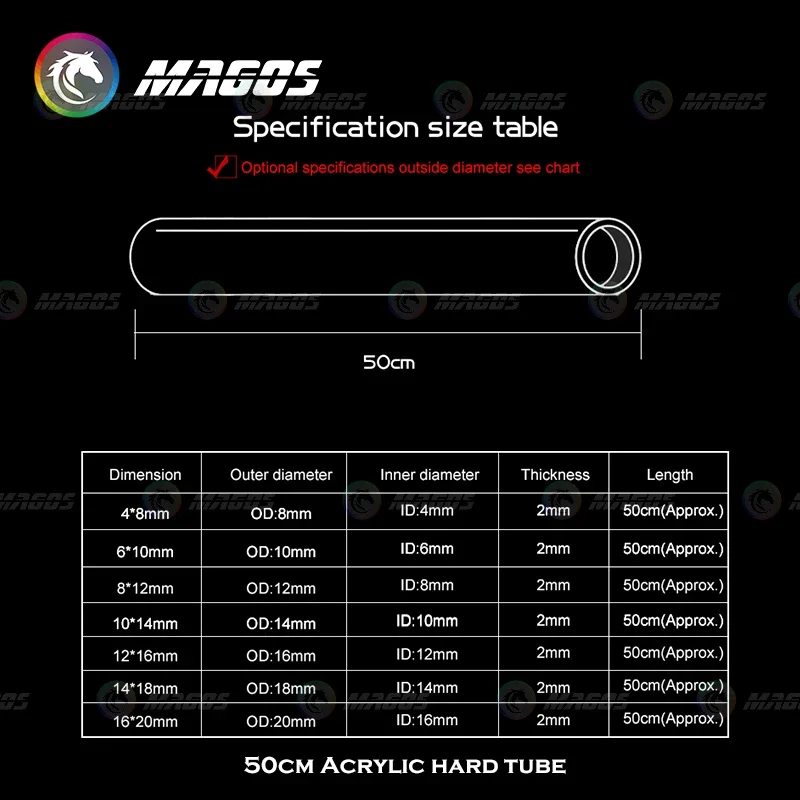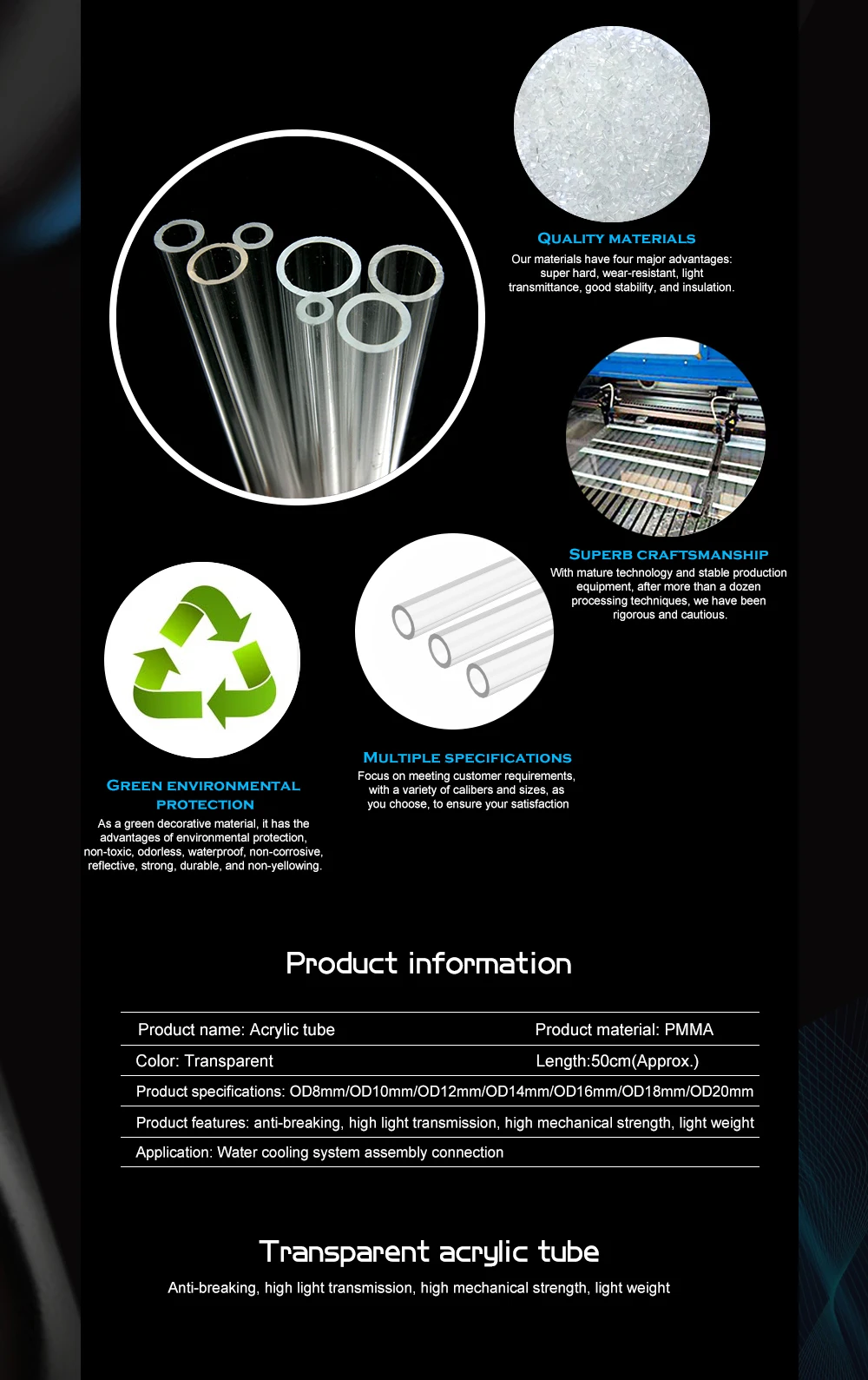 Comprar Tubo duro de acrílico transparente, 2 piezas, OD, 8mm, 10mm, 12mm, 14mm, 16mm, 18mm, 20mm, PMMA, PC, refrigeración por agua, 50cm de longitud