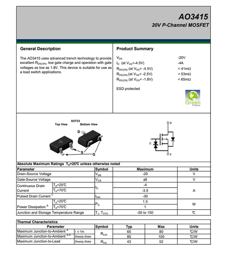 Comprar Tubo de efecto de campo SMD MOSFET, 5 piezas, AO3415, 3415 SOT-23 P, canal