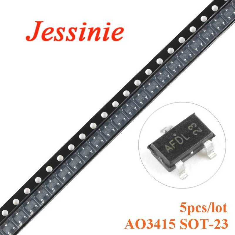 Tubo de efecto de campo SMD MOSFET, 5 piezas, AO3415, 3415 SOT-23 P, canal