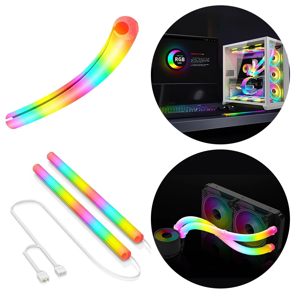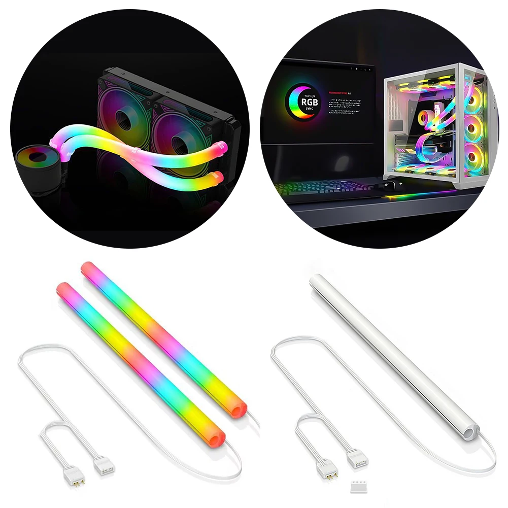 Característica:1.Fácil integración con placas base:El tubo de manguera cuenta con un conector hembra de 5 V y 3 pines que se conecta directamente a la interfaz de sincronización ARGB de 5 V de la placa base, lo que permite una integración y sincronización perfectas con el ecosistema de iluminación de su PC.Esta compatibilidad garantiza una configuración de iluminación armoniosa y vibrante en todo su sistema.