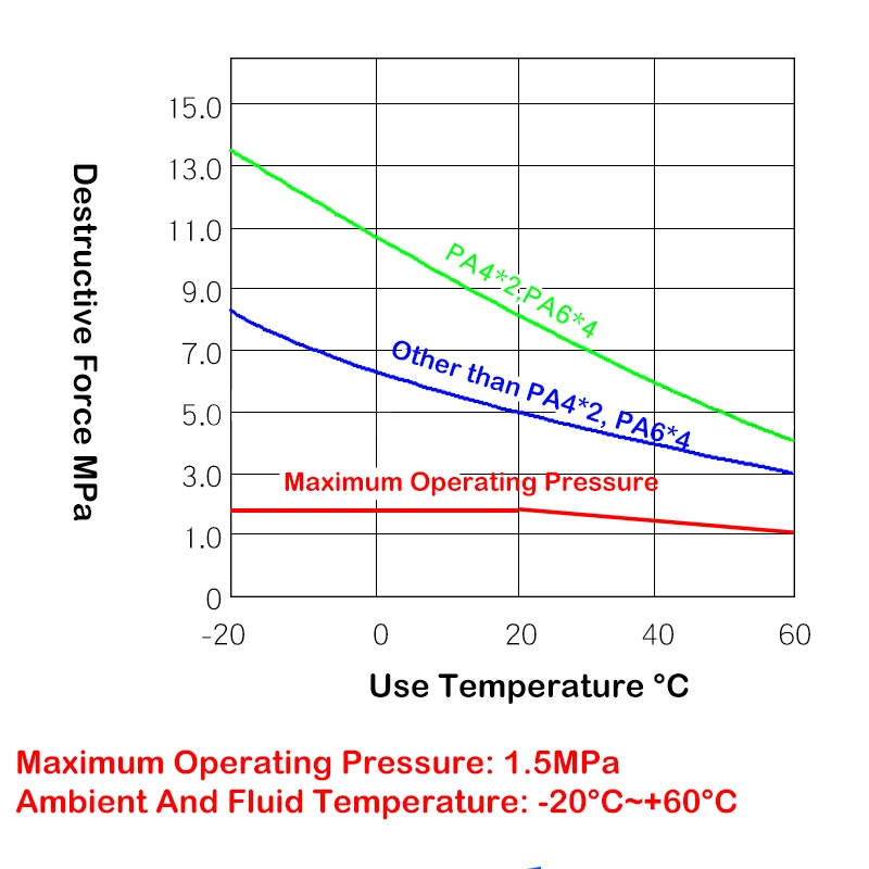 1.Use con precaución cuando la temperatura del ambiente o del medio sea demasiado alta. A °C 90, la presión de trabajo de las tuberías en ambientes de alta temperatura disminuirá.