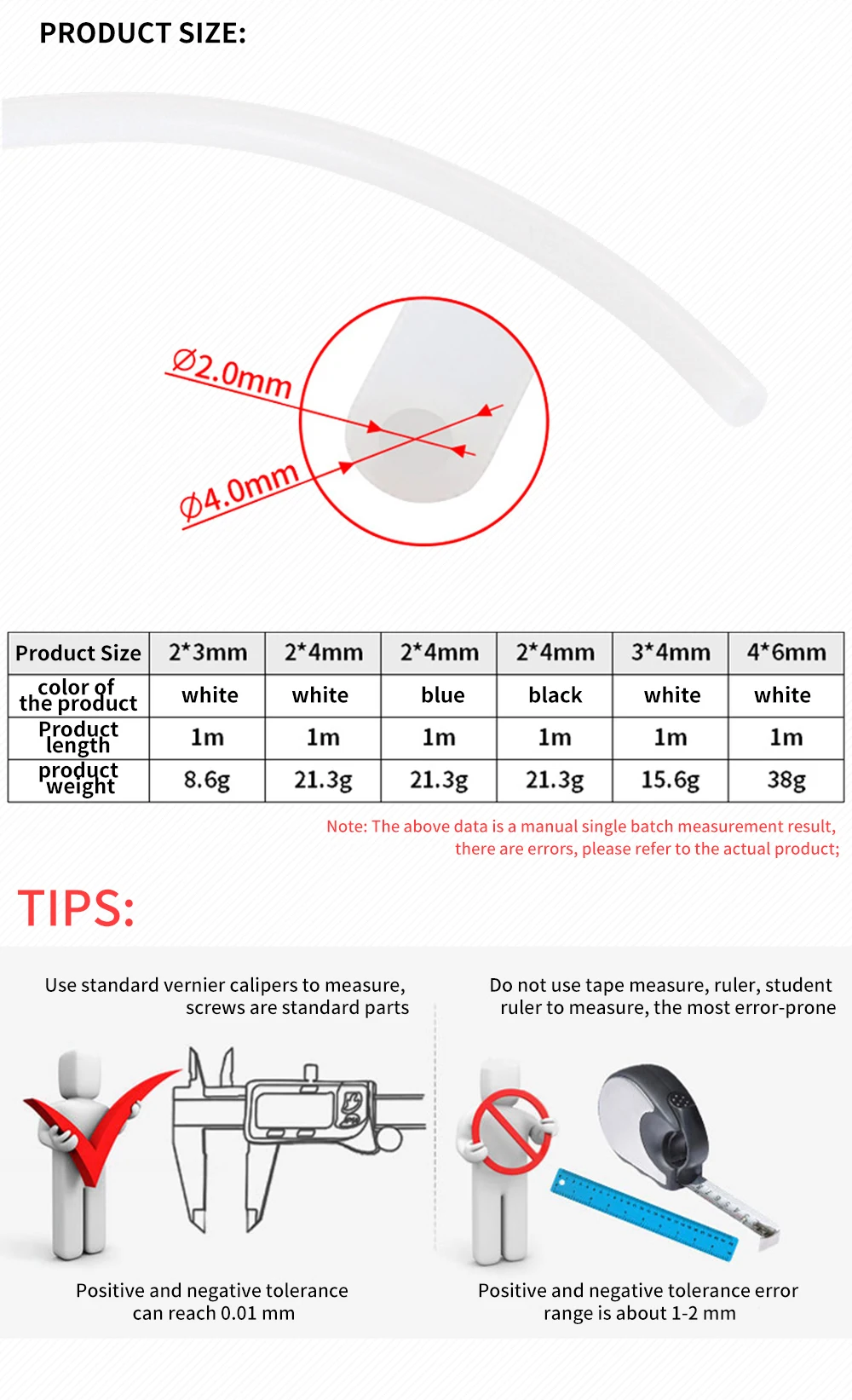 Especificaciones del producto: 2 mm x 4 mm (diámetro interior 2 mm diámetro exterior 4 mm)