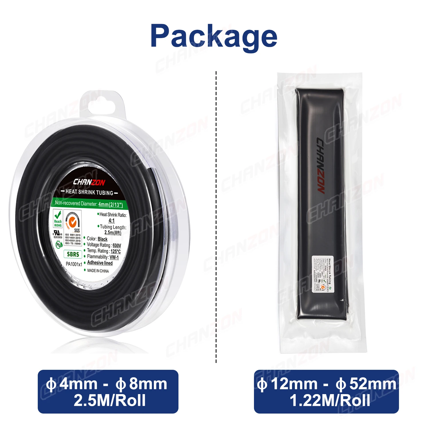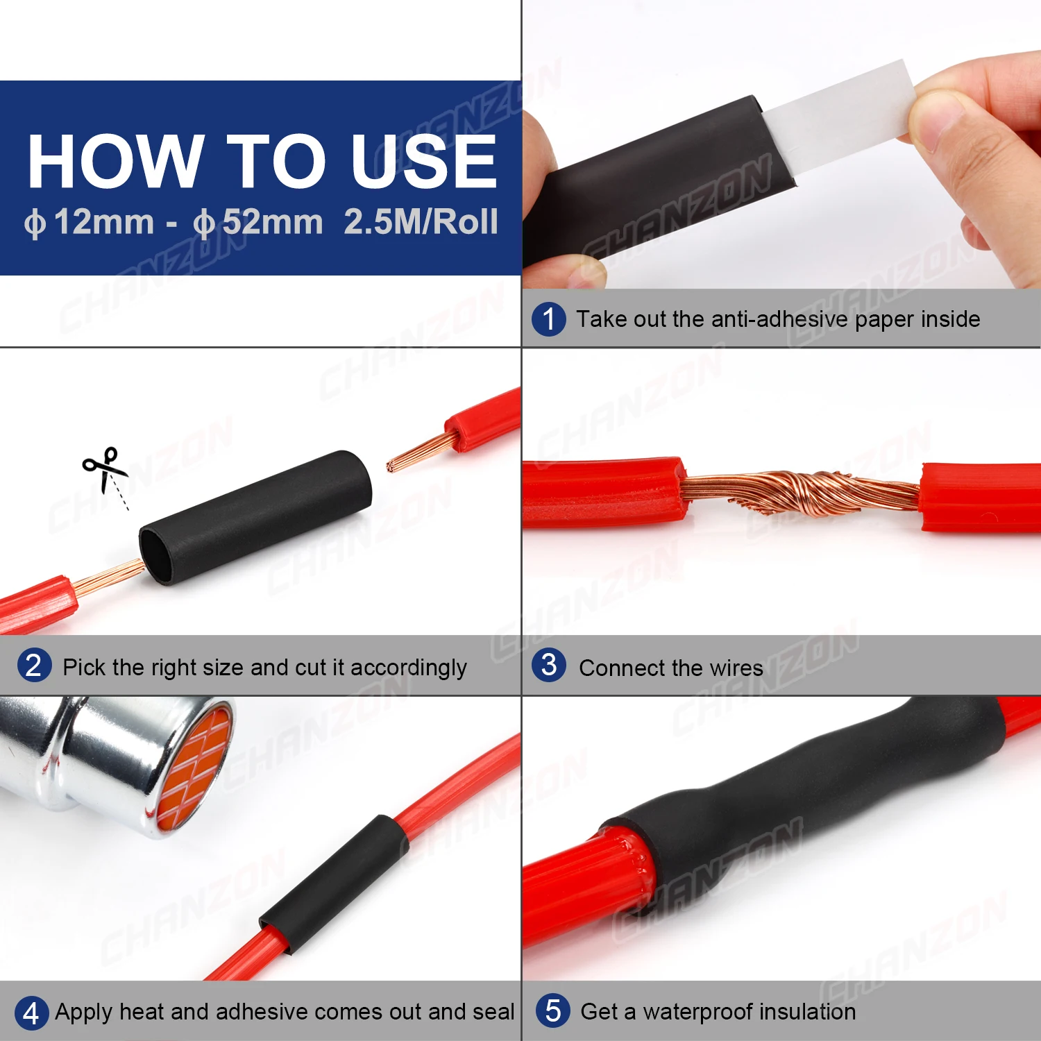 Tubo termorretráctil de 1,22M, 2,5M, 4:1, 52mm, con pegamento, alambre forrado adhesivo de doble pared, envoltura retráctil calentada impermeable de grado marino