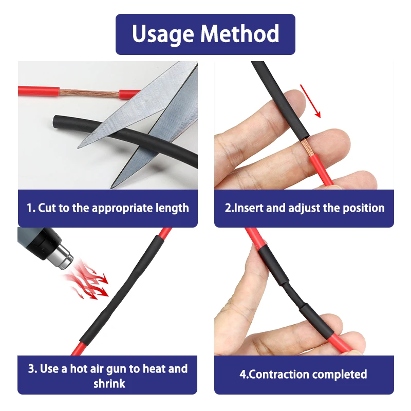 Relación de termorretráctil: 2:1 (se encogerá al máximo hasta la mitad de su diámetro suministrado)