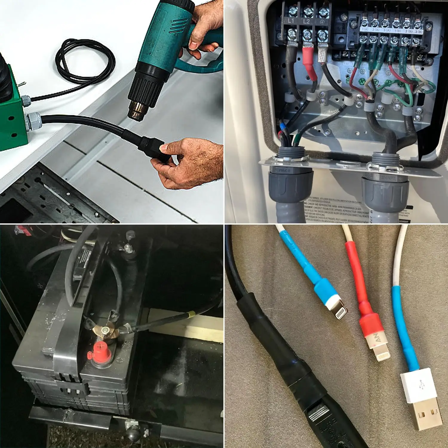 Fácil de usar y rápido: simplemente use una pistola de calor para calentarla uniformemente hasta que envuelva firmemente el cable o el conector.Es una relación termorretráctil de 3:1 y se encogerá al 1/3 original.(La temperatura de su pistola de calor es de hasta 212℉, luego el pegamento del interior se ablandará y sellará la conexión).