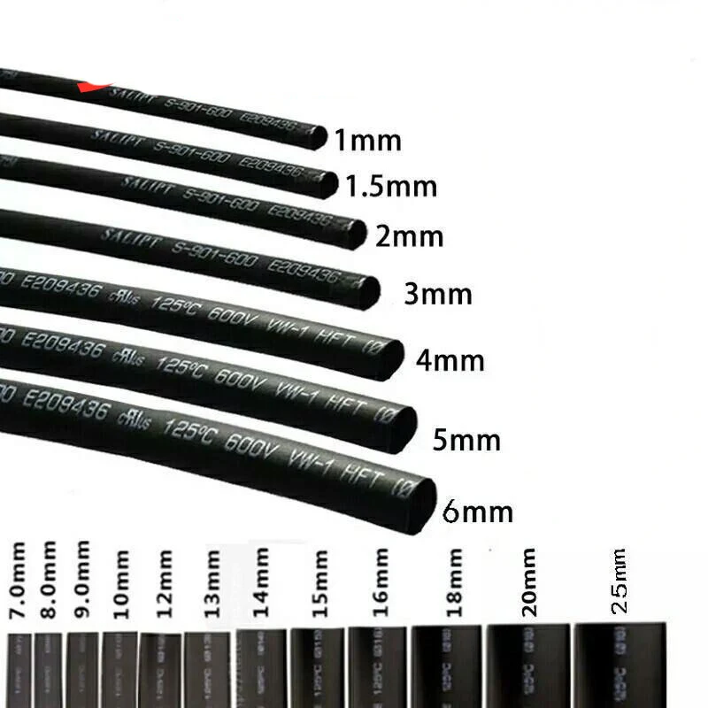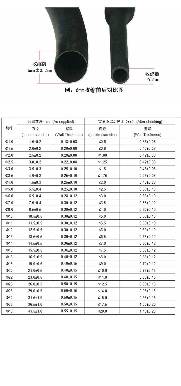 Comprar Tubo termorretráctil negro de 0,6mm, 0,8mm, 1mm, 1,5mm, 2mm, 2,5mm, 3mm, 3,5mm, 4mm, 4,5mm, cable de envoltura 2:1, 1 metro por lote