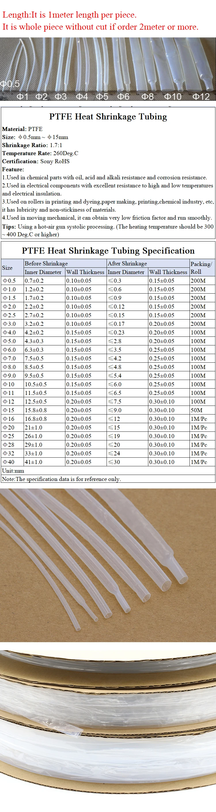 Cumple lo que promete. Tenga en cuenta que este es PTFE y requiere una temperatura bastante alta para activar la contracción. ¡La mayoría de las pistolas de calor no son suficientes!