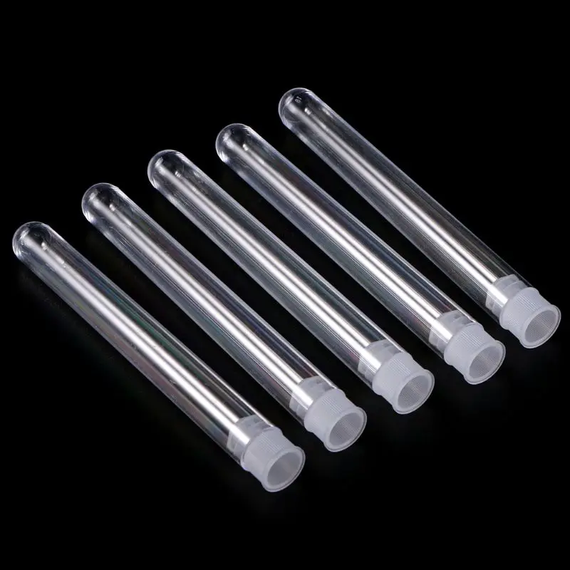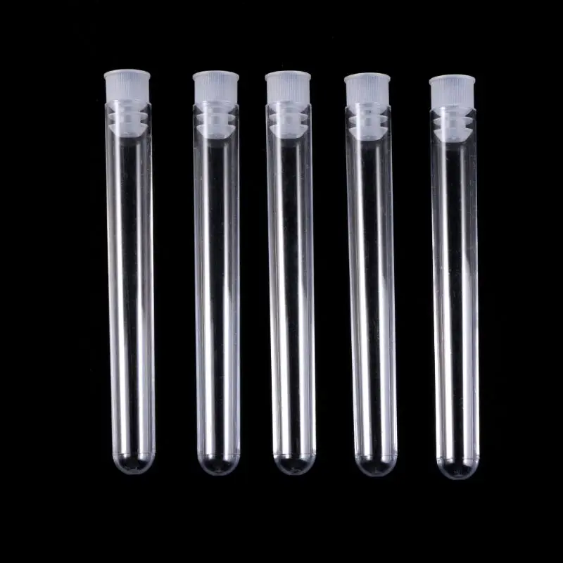 50 unids/pack 12x100mm laboratorio transparente tubos de ensayo de plástico transparente viales con tapa de empuje suministros de laboratorio escolar