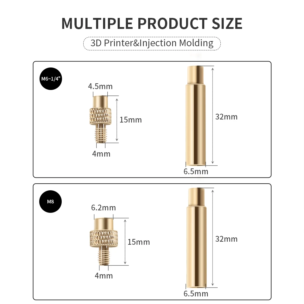 2. Ámbito de aplicación: intercambiable con puntas de soldador de uso general estándar 936, utilizadas para M2 (M2.5 compartido), M3, M4, 1/4, 1, 2, 1, 2, 1, 2, 1, 1, m8 y otras tuercas o insertos de fusión en caliente, a menudo utilizados en impresoras 3D, imprimen tuercas de cobre de fusión en caliente o implantes de tuercas en plástico.