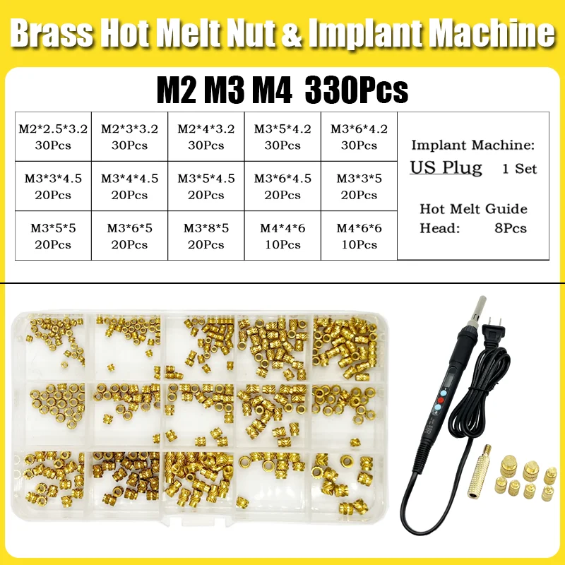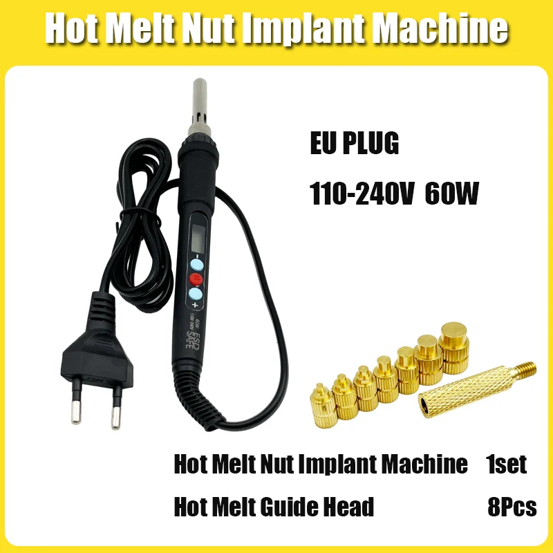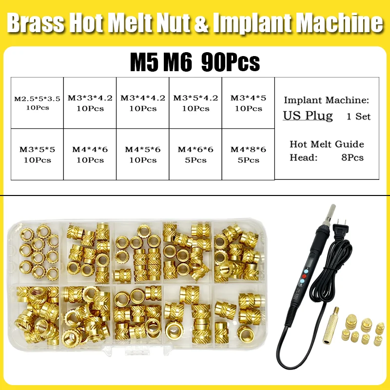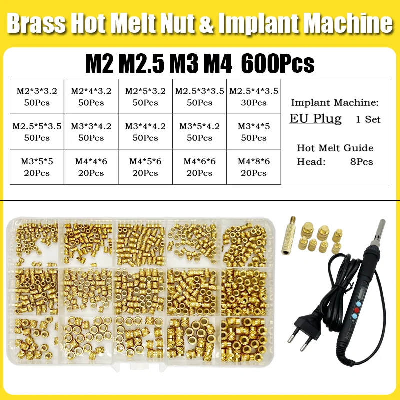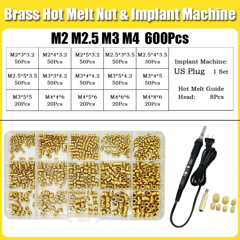 Máquina de implante de tuercas termofusibles, tuercas de cobre, implante de conducción térmica, soporte de impresión 3D de plástico DIY, boquilla de presión de tuercas termofusibles