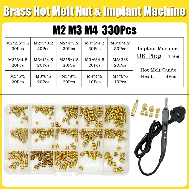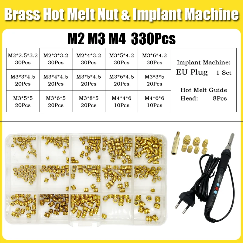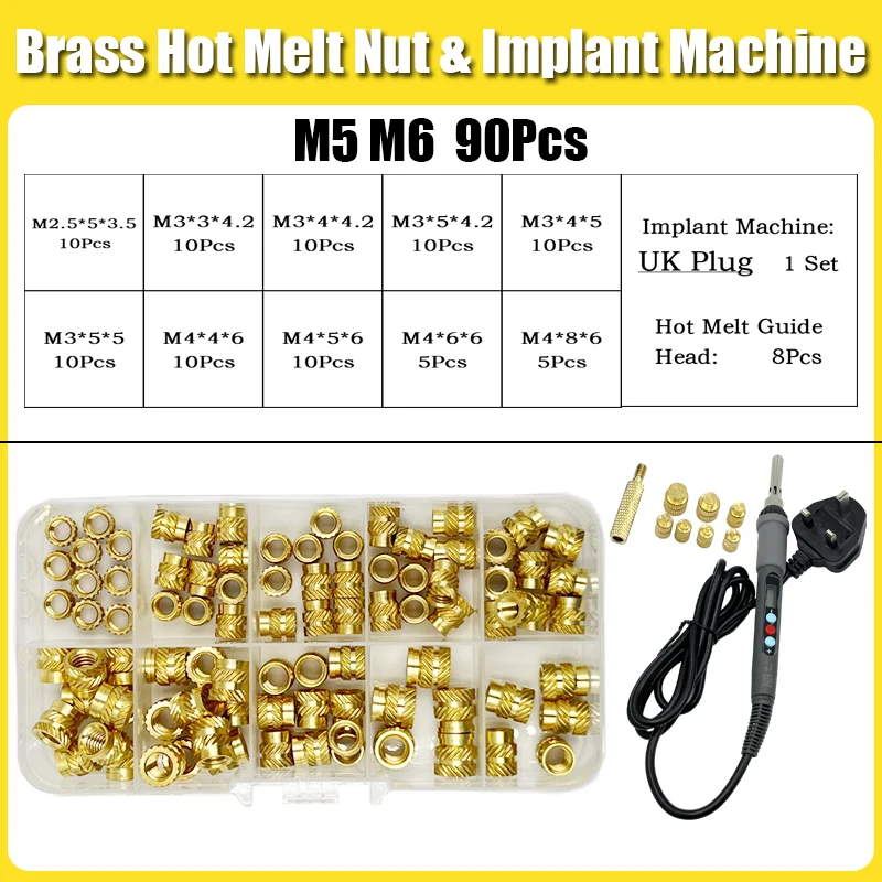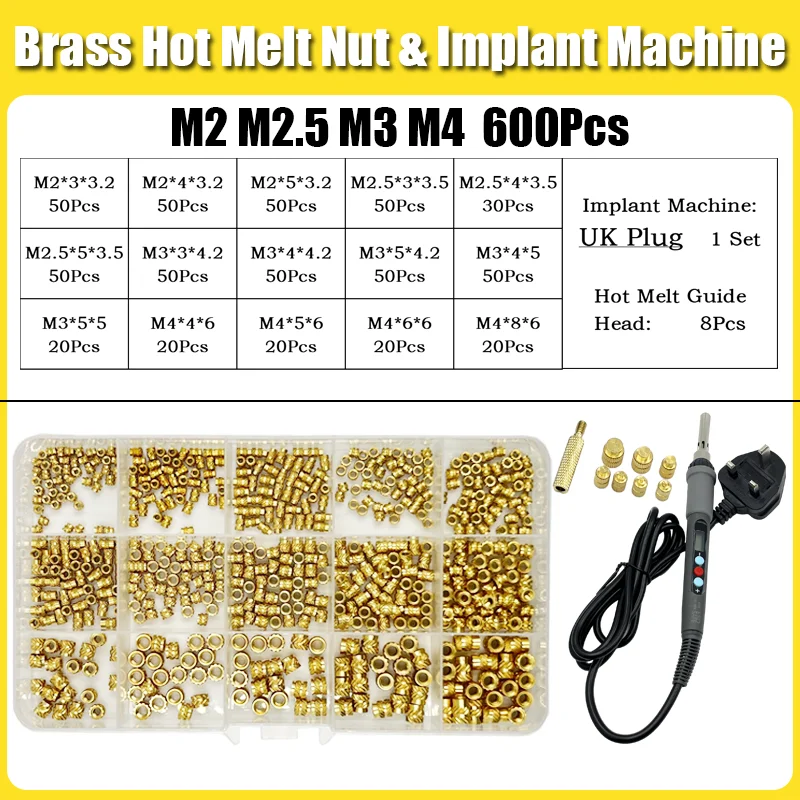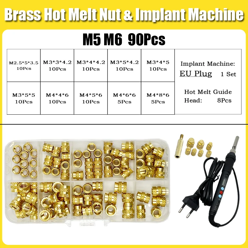 Máquina de implante de tuercas termofusibles, tuercas de cobre, implante de conducción térmica, soporte de impresión 3D de plástico DIY, boquilla de presión de tuercas termofusibles