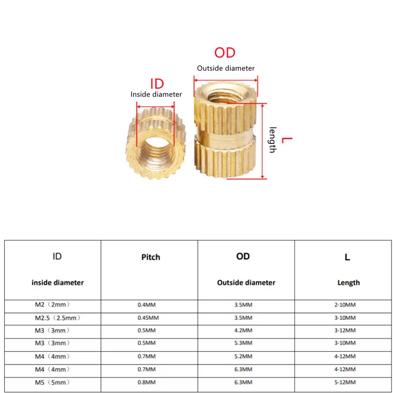Comprar Tuerca de inyección de cobre, Kit de moleteado para electricidad, 100/200/500 piezas M2 M2.5 M3 M4