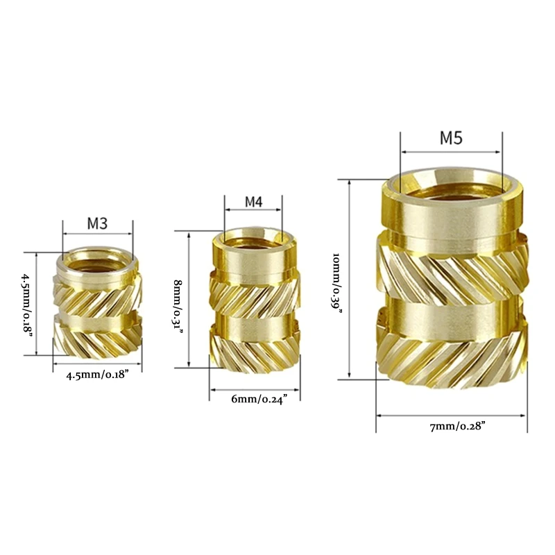 Comprar Tuerca de latón de 50 piezas, varilla roscada M3 M4, inserto de M5, Tuercas moleteadas de latón de fusión en caliente, insertos de rosca de cobre de moldeo por calor