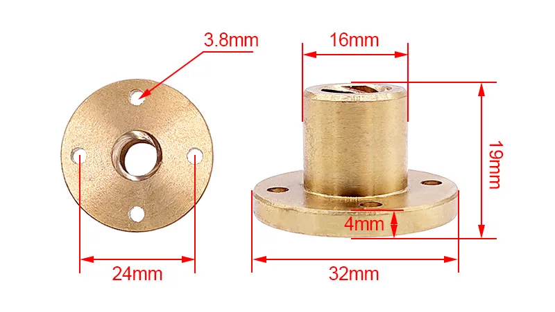 Comprar Tuerca de latón T10 leadscrew, paso de 2mm, tornillo de plomo de latón, piezas CNC, accesorios de impresora 3D, 1 ud.