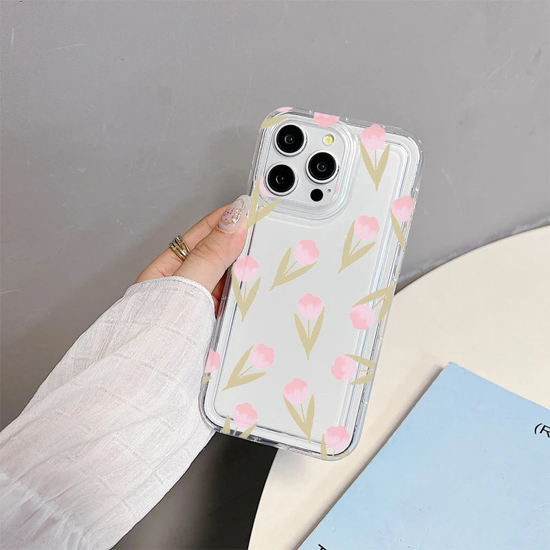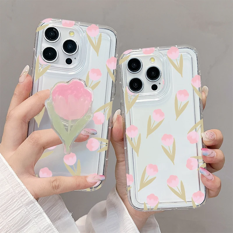 Comprar Tulip Grip Holder Phone Case For iPhone 15 14 13 12 11 16 Pro Max SE XR X XS 7 8 Plus Stand Flower Clear Shockproof Soft Cover