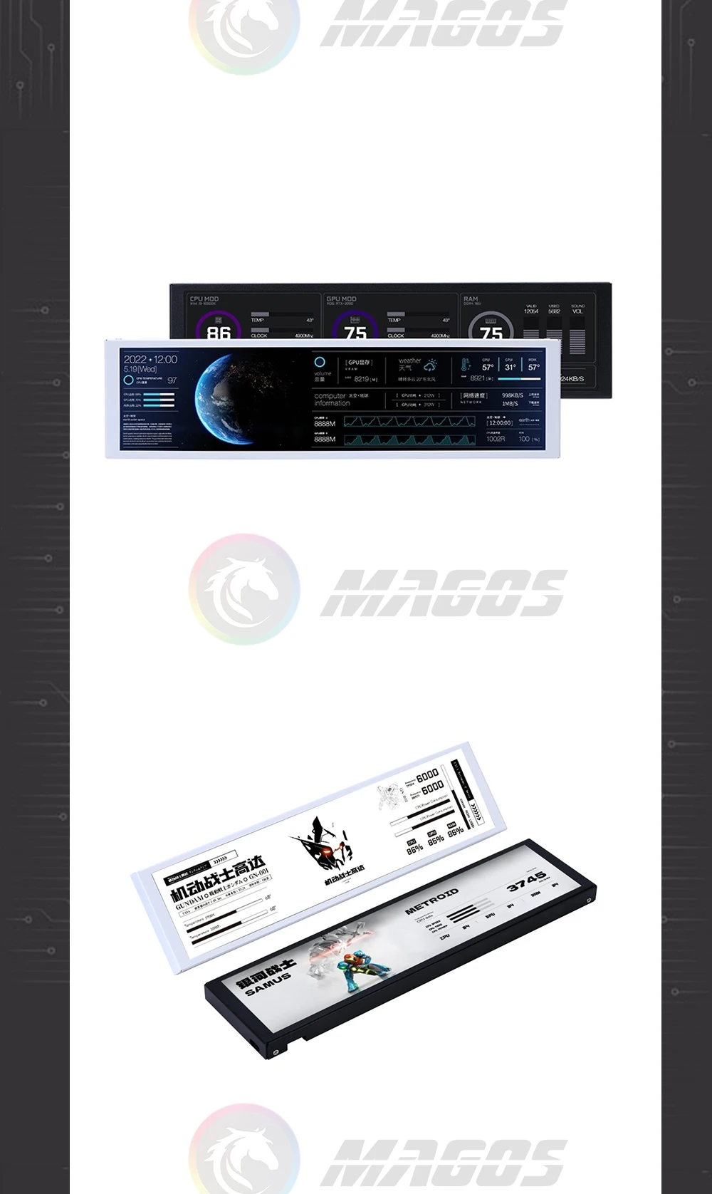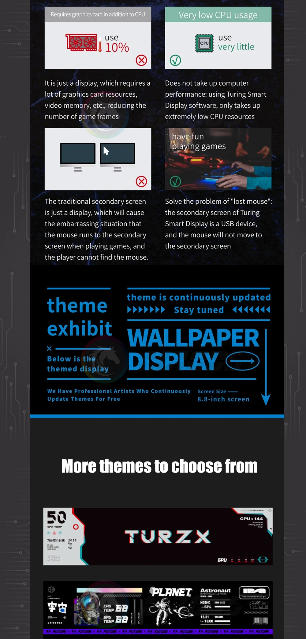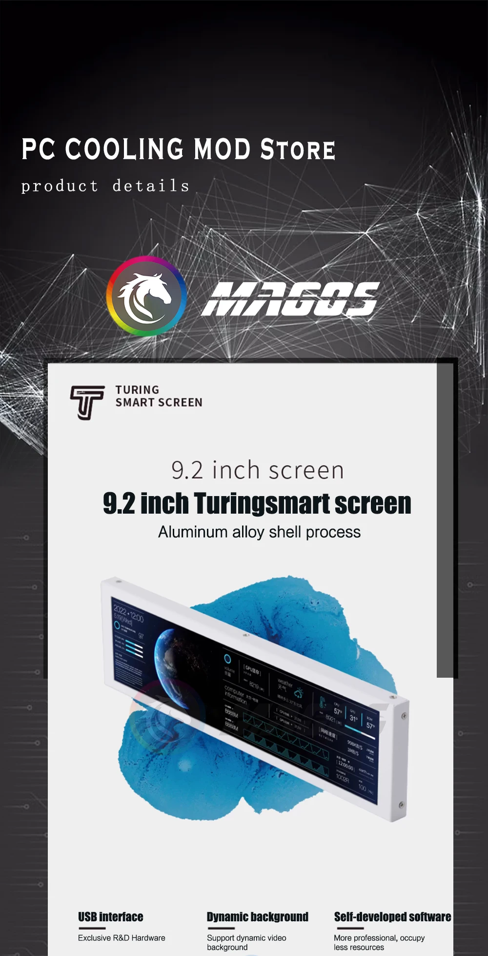 Turing-Smart Caja de computadora Pantalla IPS de 9,2 pulgadas Tipo-C, Monitor de gabinete para jugadores de PC Monitoreo AIDA 64 libremente, Negro/Blanco