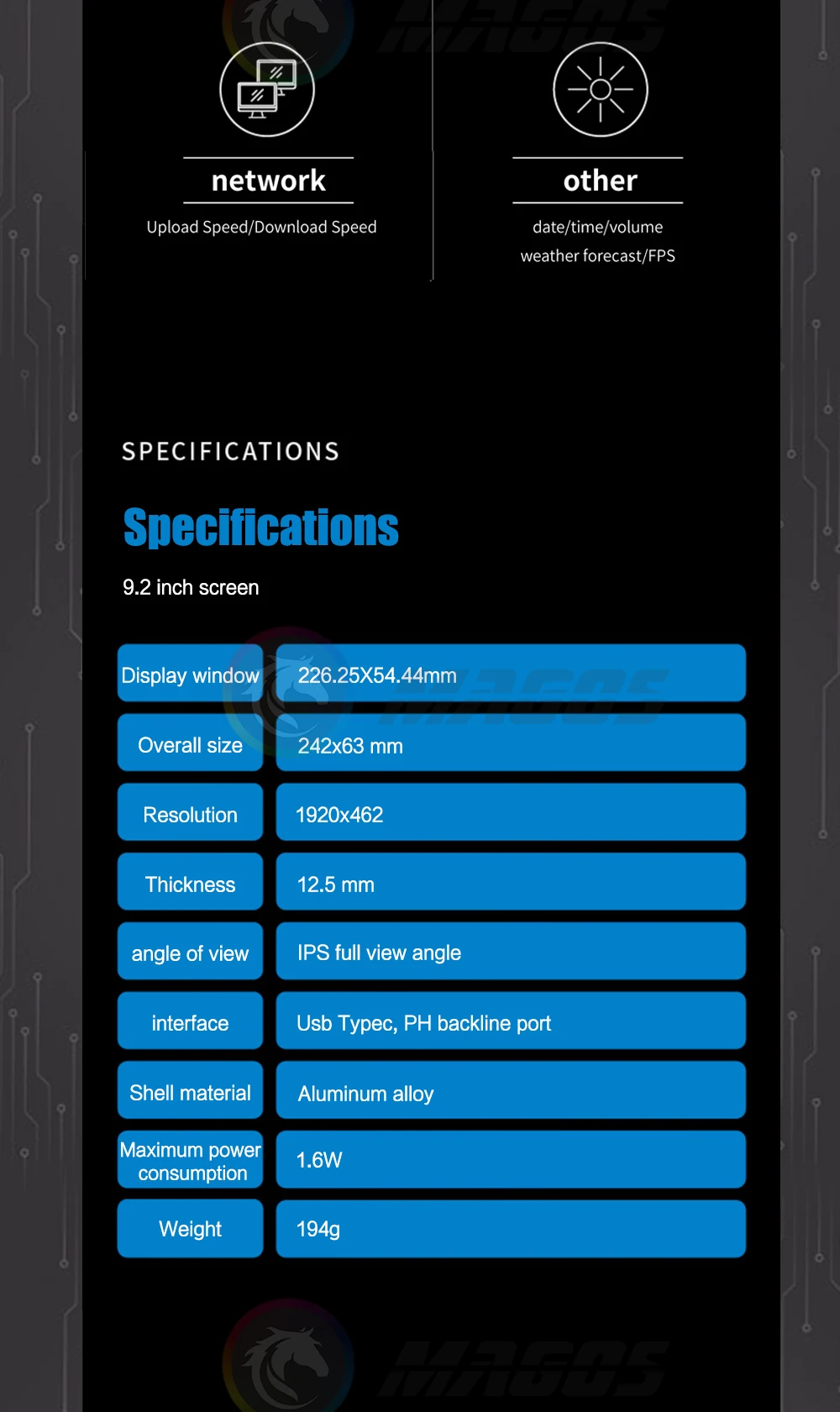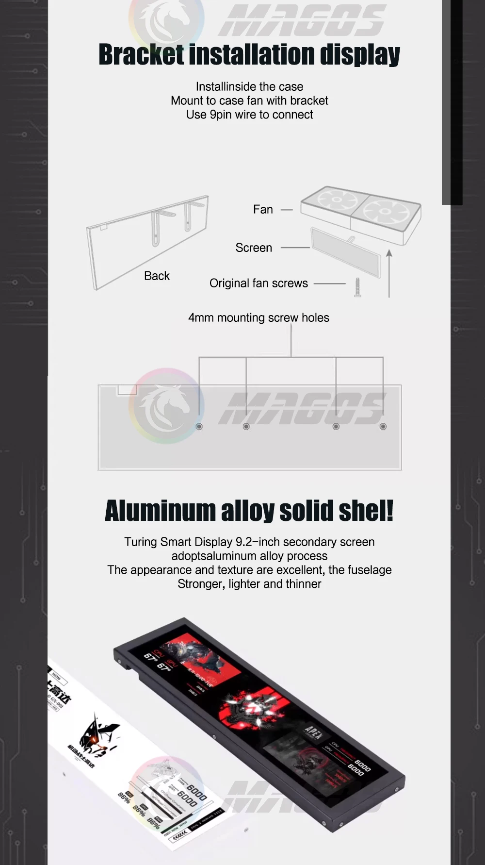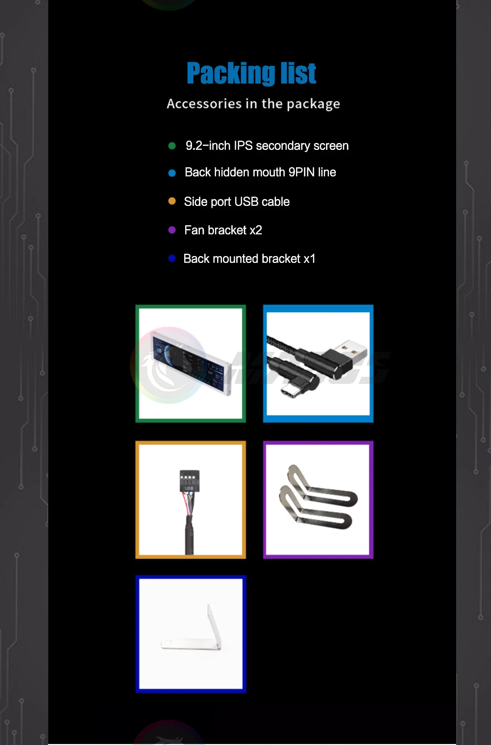 Turing-Smart Caja de computadora Pantalla IPS de 9,2 pulgadas USB tipo C, monitor de gabinete para jugadores de PC Monitoreo AIDA 64 libremente, negro/blanco