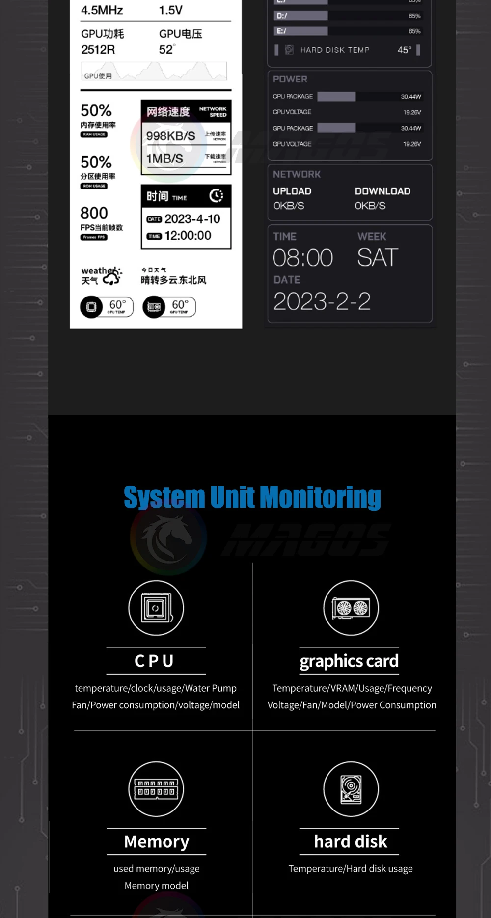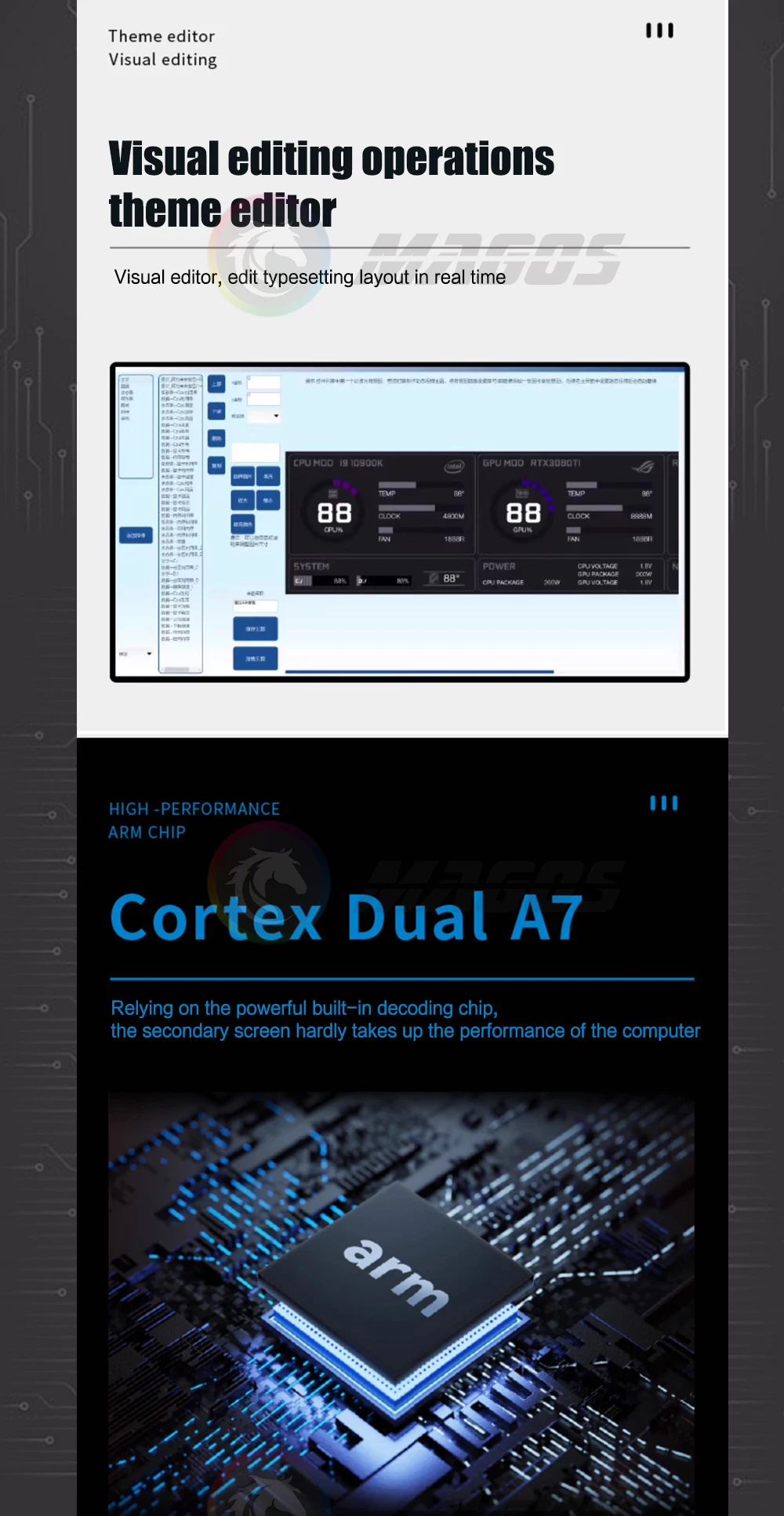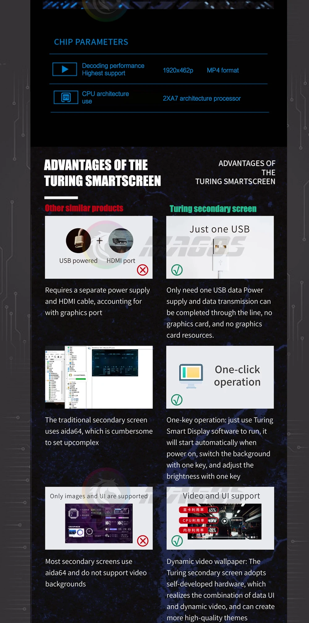 Turing-Smart Caja de computadora Pantalla IPS de 9,2 pulgadas USB tipo C, monitor de gabinete para jugadores de PC Monitoreo AIDA 64 libremente, negro/blanco
