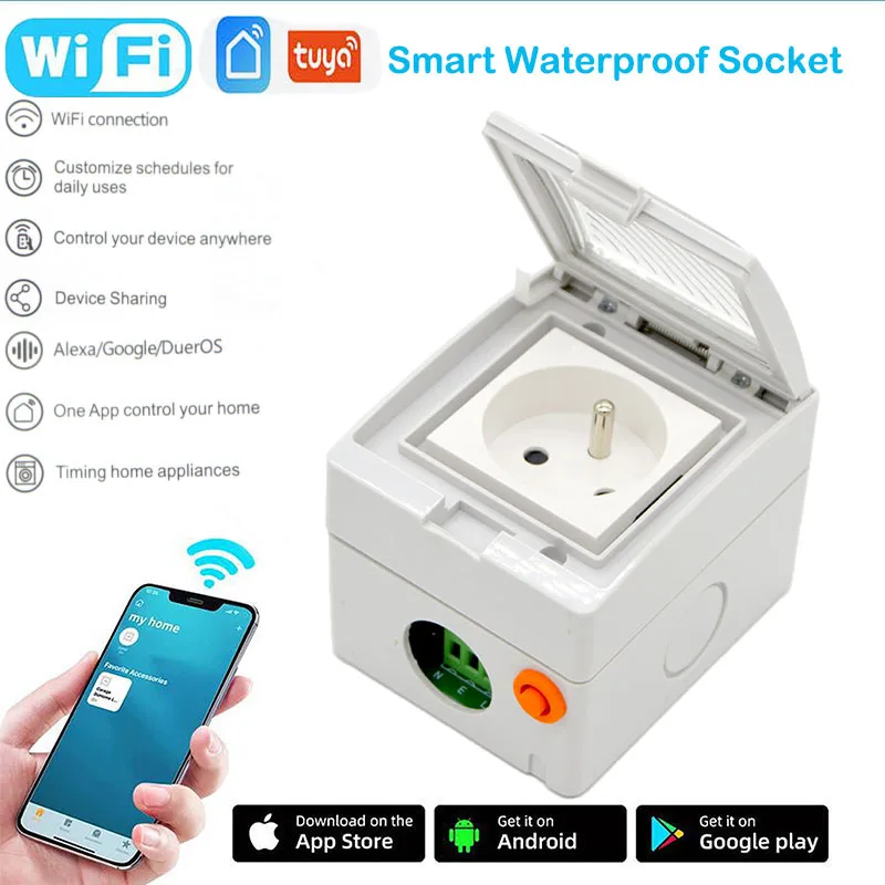 Tuya 16A WiFi Smart Socket Plug IP55 Bathroom Wall Waterproof Power Supply Jack App Remote Control Support Alexa Google DuerOS