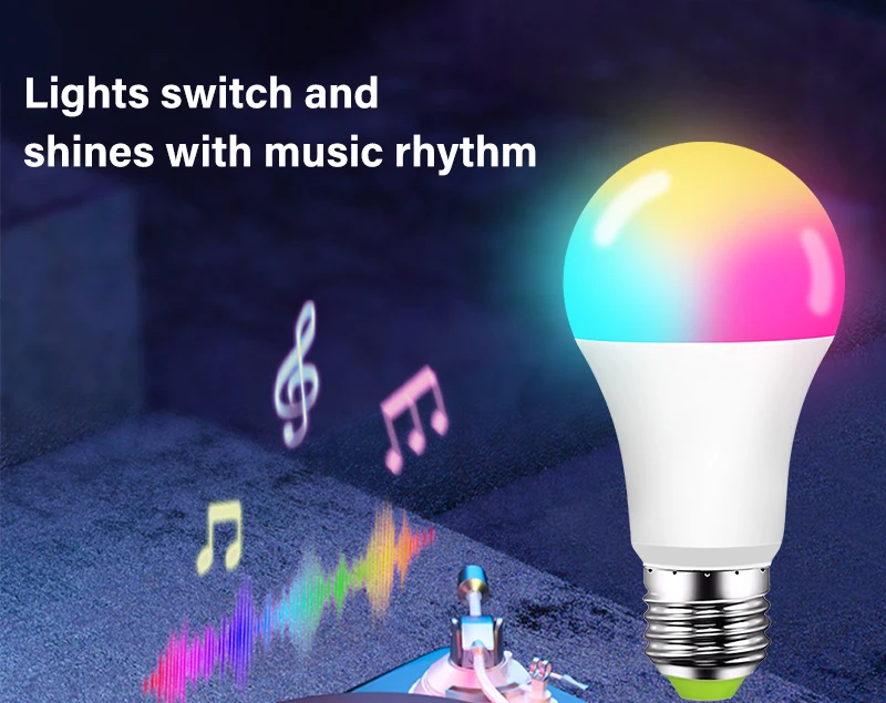 Bombilla inteligente RGBCW y multicolor: la bombilla inteligente RGB blanca fría y blanca cálida crea tus efectos de luz favoritos con 16 millones de colores y el brillo de cada color es regulable.