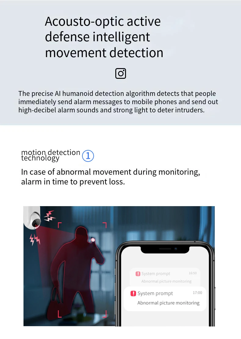 Detección inteligente de movimiento de defensa activa acústica-óptica