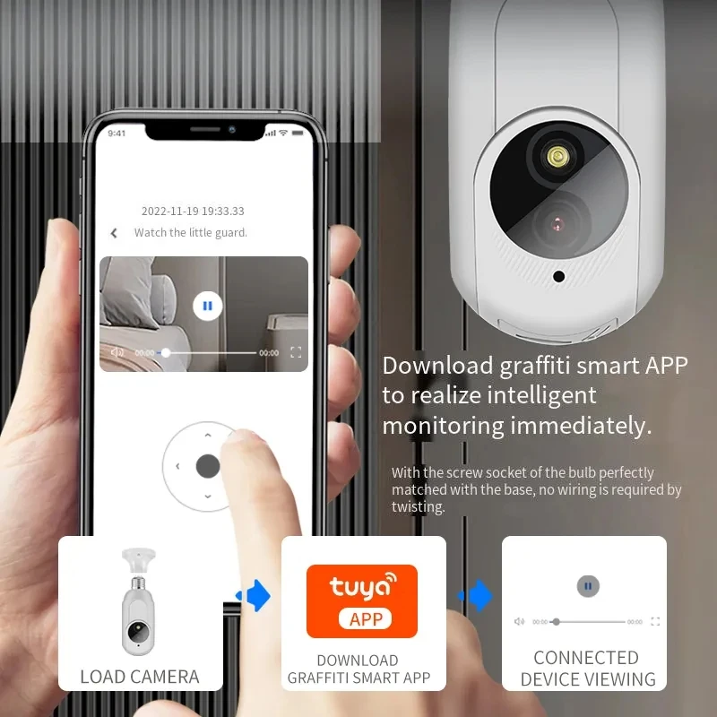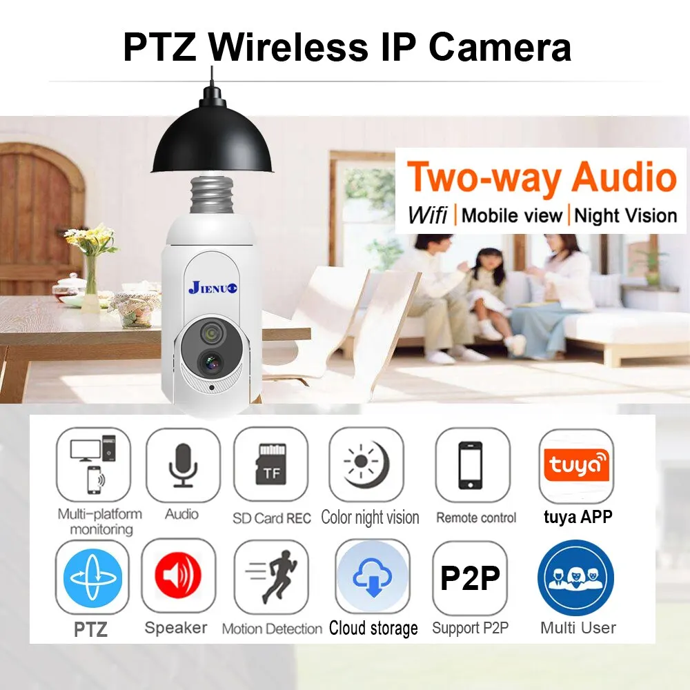 Comprar Tuya E27 cámara IP PTZ bombilla WIFI seguimiento automático de IA vídeo Cctv vigilancia a todo Color visión nocturna inalámbrica HD cámara de hogar vida inteligente