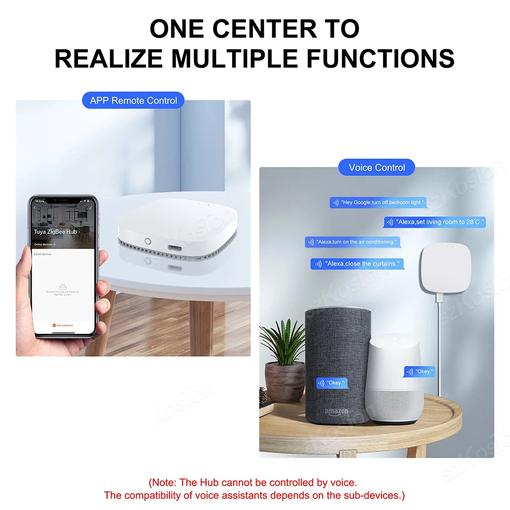 2.Aplicación Smart Life/Tuya y control por voz.Podría controlarse mediante altavoces de voz como Alexa y asistencia de Google.(La función de voz depende de su subdispositivo.Si su subdispositivo tiene función de voz, puede controlar su subdispositivo mediante voz)