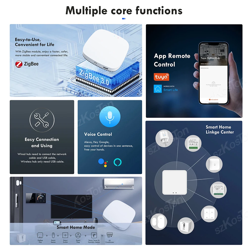 Comprar Tuya inteligente con cable/inalámbrico Zigbee 3,0 Hub de enlace puente aplicación Smart Life dispositivo de automatización Control remoto por voz para Alexa Google