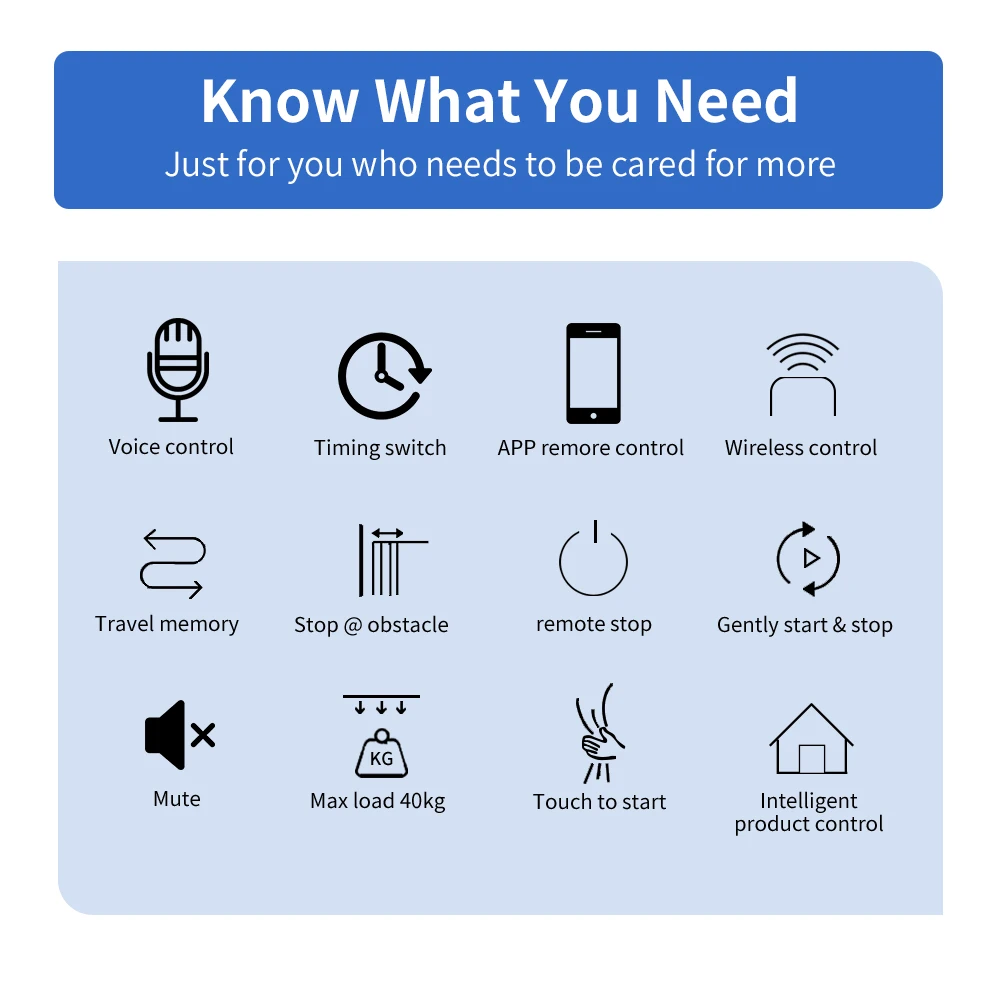 ● Control más fácil a través de Alexa/Google/Wifi:Simplemente conéctelo con Wi-Fi (Tuya), puede controlarlo hacia arriba o hacia abajo a través de la voz o APP en su teléfono móvil.
