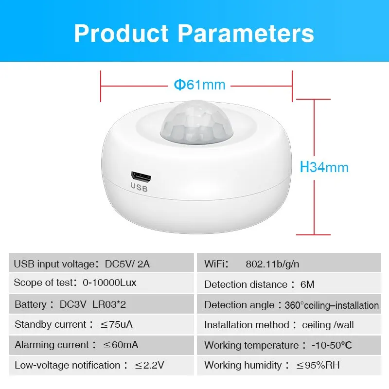 Comprar Tuya-Sensor de movimiento inteligente para el hogar, Detector pasivo infrarrojo, con WiFi, compatible con Alexa y Google Home