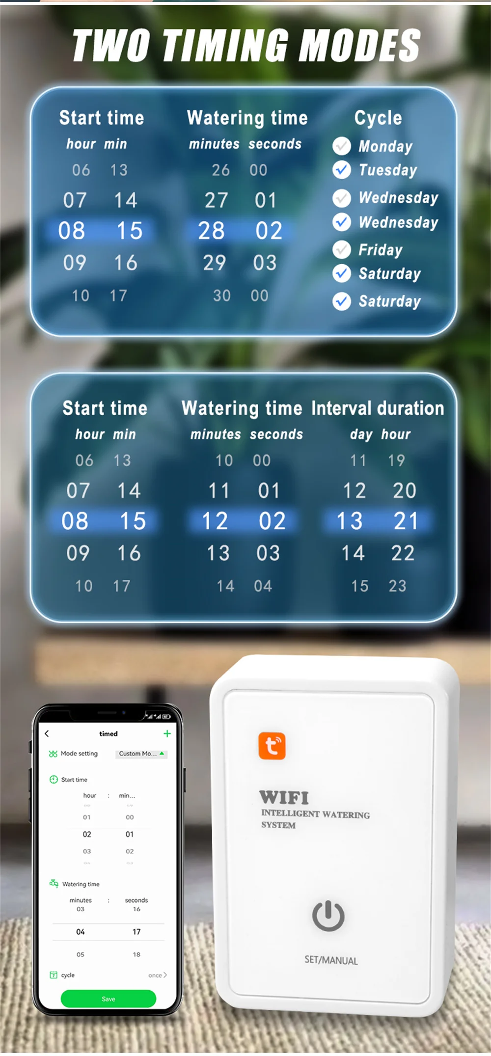 5. Riego regular inteligente, sin limitación de distancia, no importa si va a viajar o trabajar, puede llevar a cabo el control remoto del teléfono celular
