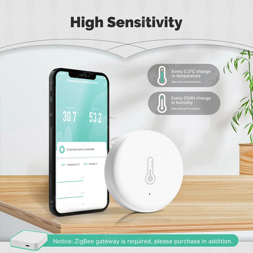 1.Sensor de temperatura y humedad Tuya Smart ZigBee: un concentrador de enlace Tuya ZigBee es imprescindible para trabajar con el sensor de temperatura y humedad, así como con una variedad de productos inteligentes ZigBee, que ha demostrado ser el puente y el centro de control para hogares inteligentes y juega un papel insustituible para todos los productos ZigBee y realiza toda la conexión inteligente de su casa.Simplemente agregue el sensor al concentrador ZigBee después de agregar el concentrador a la aplicación Smart Life/Tuya.