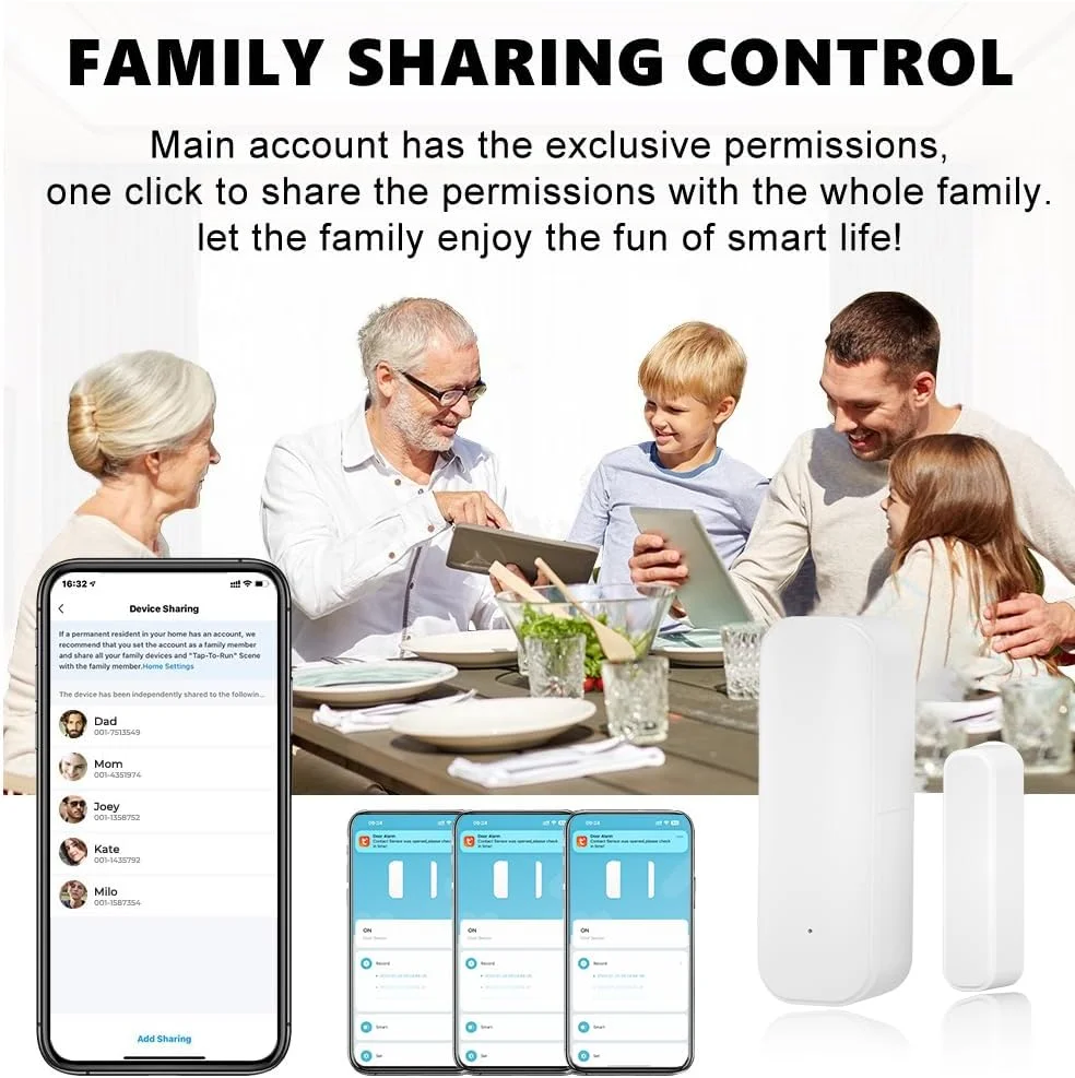 3) [Compartir control y seguimiento del historial] Puede compartir el dispositivo con su familia y realizar un seguimiento del historial de actividad del sensor