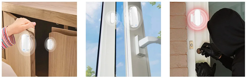 1) Después de conectar el Tuya ZigBee Hub, cuando salga de casa, le enviará mensajes de notificación cuando se abran las puertas y ventanas, para que pueda detectar al intruso a tiempo.