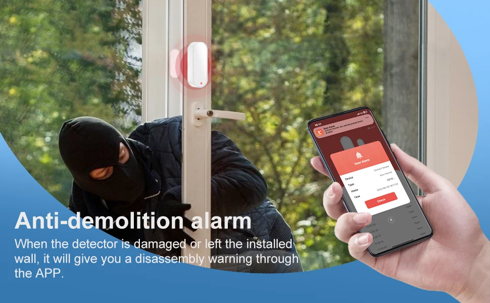 2) Descargue la APLICACIÓN "Tuya/Smart Life" desde GooglePlay o App Store y agregue un dispositivo para detectar el estado de puertas y ventanas.La seguridad del hogar siempre está en tus manos.