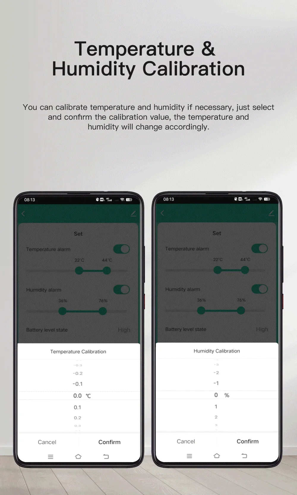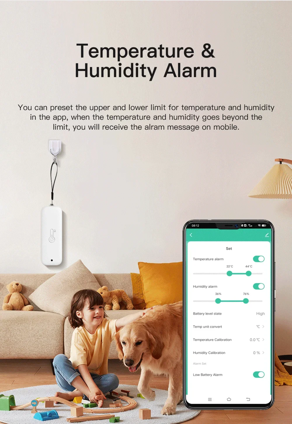 3.El sensor no puede configurar la alarma.La función de alarma se configura en la APLICACIÓN.