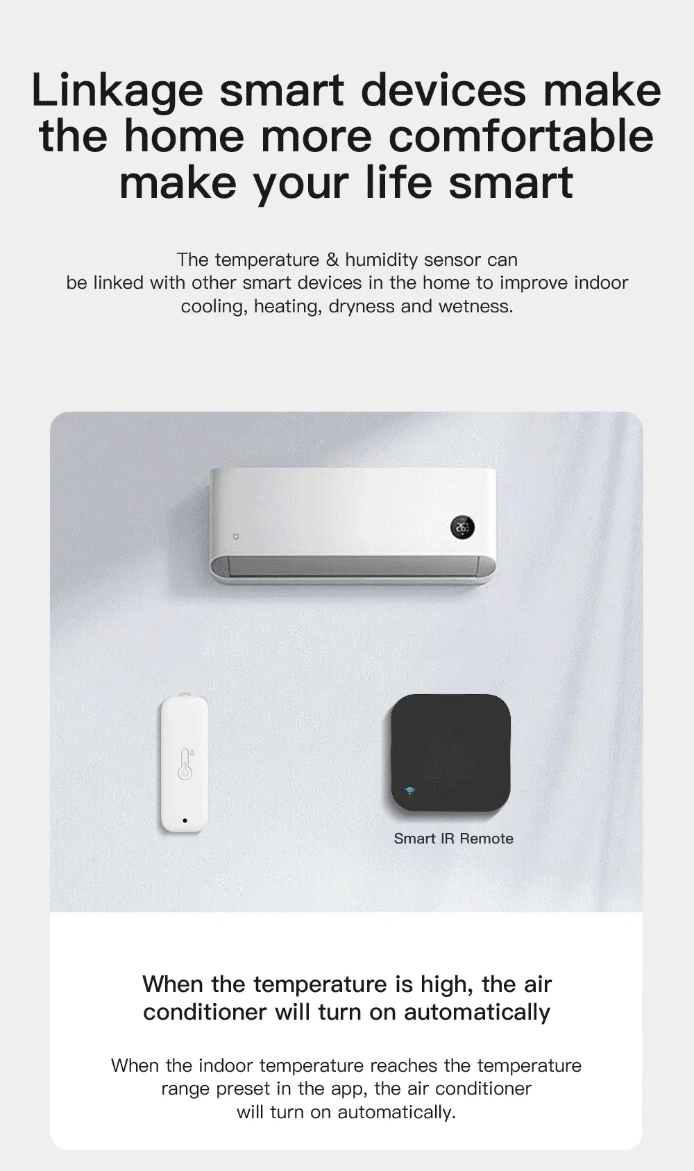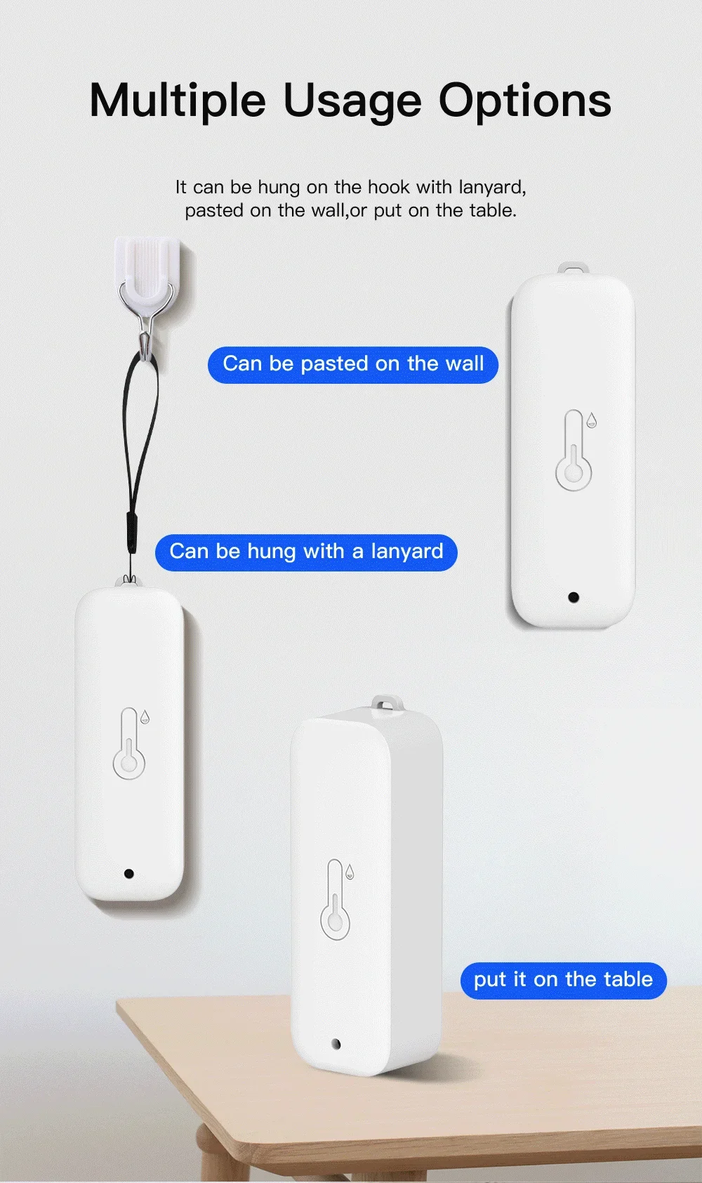 El sensor se puede utilizar como fuente de datos de temperatura y humedad de Tuya Smart, Smart Life, Amazon Alexa, Google Home.Puede realizar muchos procesos automatizados basados en la fuente de datos.