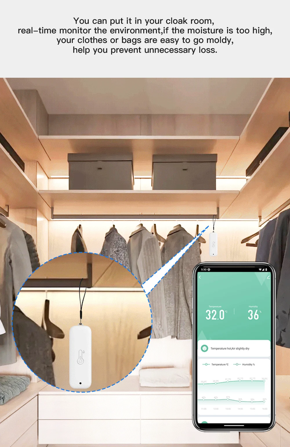 2.El sensor se instalará en un lugar donde la temperatura o humedad ambiente cambien drásticamente.En este entorno, el dispositivo iniciará frecuentemente la red para informar datos.