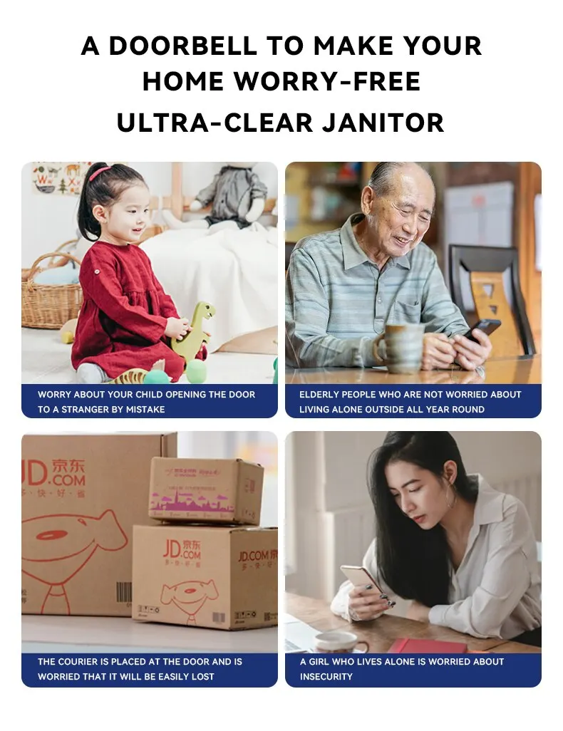 • Cámara HD :El timbre viene con una cámara HD, que proporciona imágenes claras y detalladas de su porche o entrada.