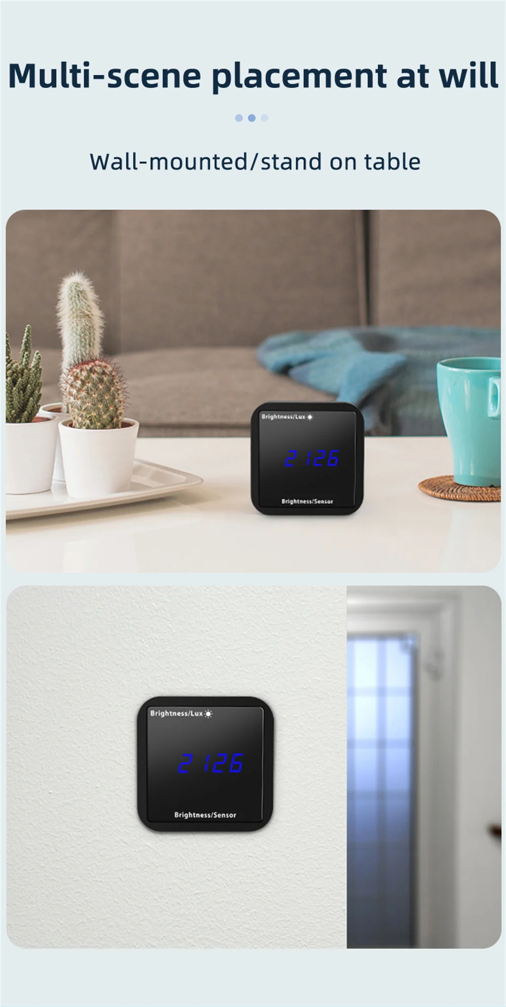 【Sensor de brillo inteligente WiFi con pantalla de temperatura y humedades 】 Mejore su sistema de automatización del hogar Con este sensor de brillo inteligente WiFi. Proporciona una detección precisa de la iluminancia, manteniendo su hogar bien iluminado y energéticamente eficiente. La Pantalla de temperatura y humedad del sensor le permite monitorear y mantener un ambiente de vida cómodo. Con su diseño elegante y características innovadoras, Este sensor es imprescindible para los hogares modernos.