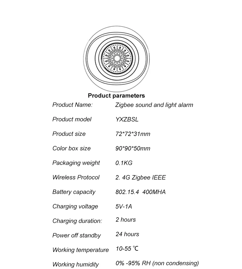 Nombre del producto: Alarma de luz y sonido Zigbee