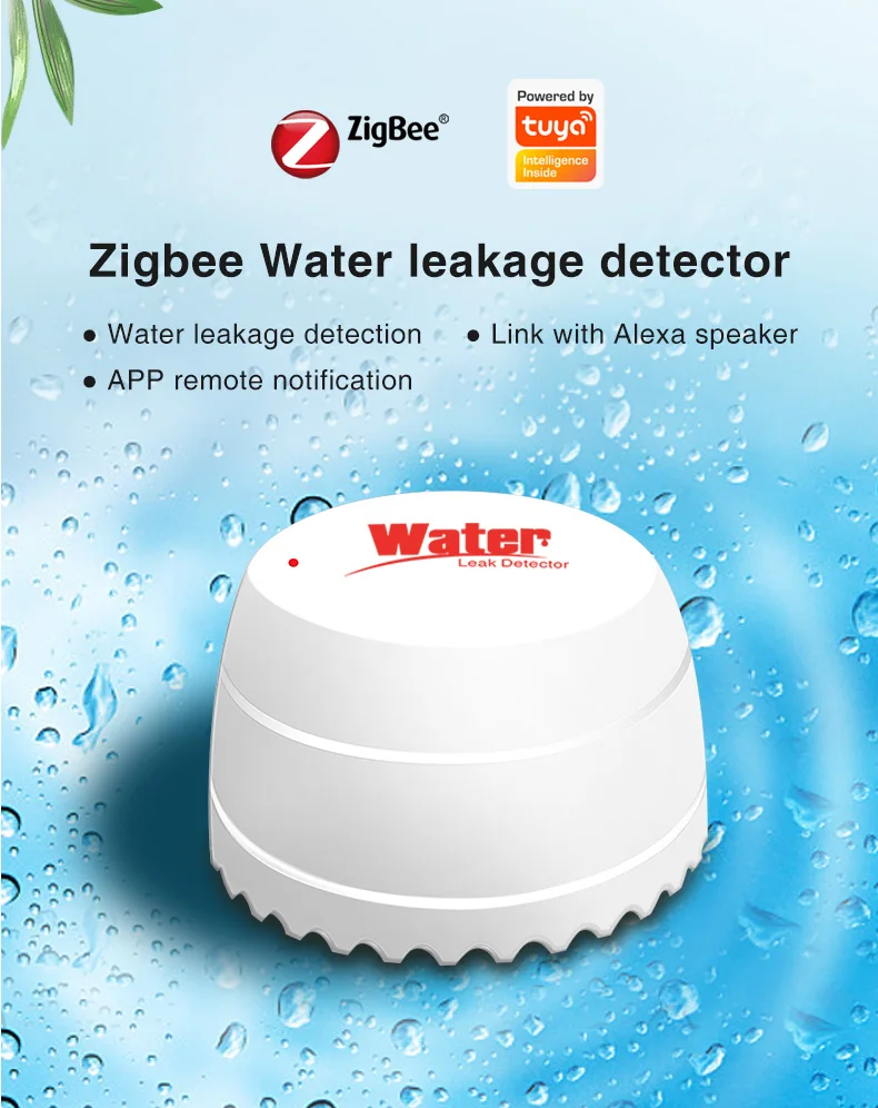 • Detector de fugas de agua Zigbee :El detector de fugas de agua TUYA Zigbee está diseñado para detectar fugas de agua y alertarlo inmediatamente a través de la aplicación Smart Life.