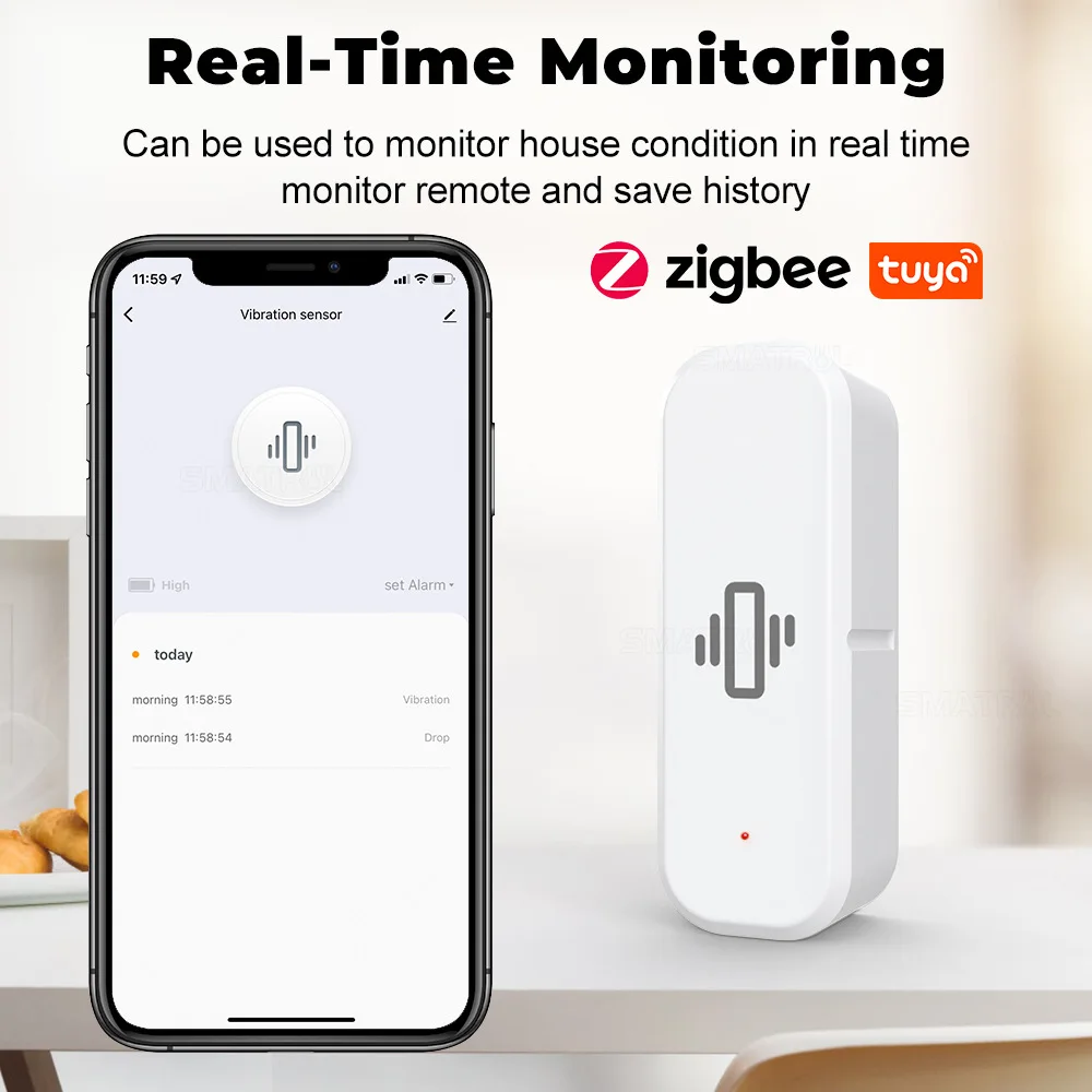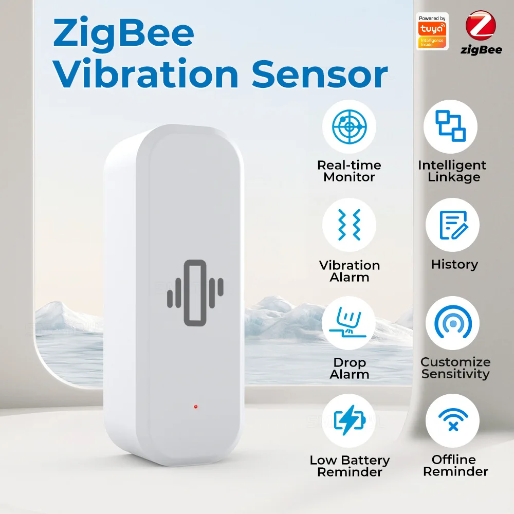 Comprar Tuya ZigBee Sensor de vibración inteligente, sistema de protección de seguridad para el hogar, alarma de detección antirrobo, rotura de ventana y puerta