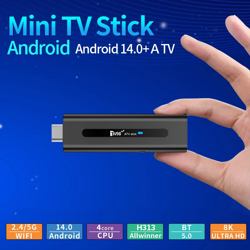Comprar TV98 ATV 8K Smart TV Stick Android 14 ATV 2GB 16GB Allwinner H313 HD 4K reproductor 4G 5G Wifi soporte OTA BT5.0 caja de TV remota de voz