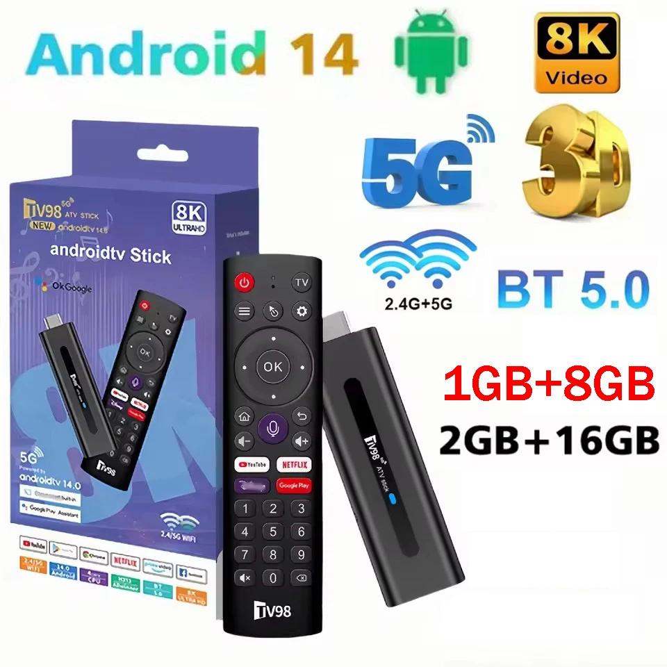 Comprar TV98 ATV 8K Smart TV Stick Android 14 ATV 2GB 16GB Allwinner H313 HD 4K reproductor 4G 5G Wifi soporte OTA BT5.0 caja de TV remota de voz