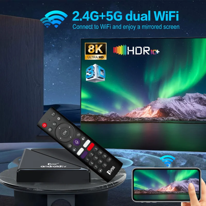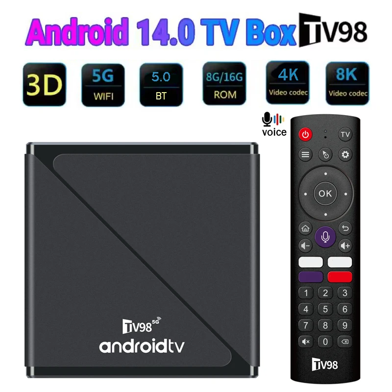 Comprar TV98 ATV Pro TV Box Android 14 Allwinner H313 Quad Core HD 4K 8K 5G 4G Wifi Dual BT5.0 reproductor multimedia inteligente remoto por voz iptv