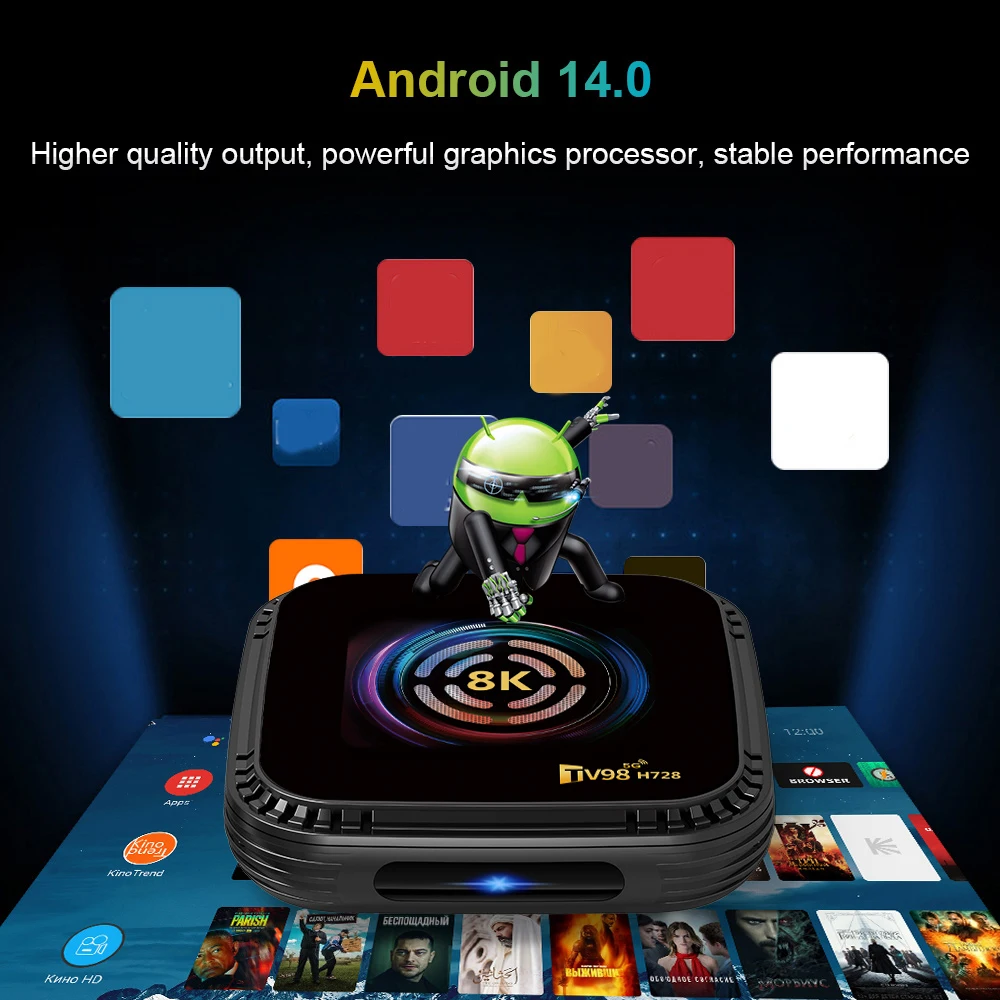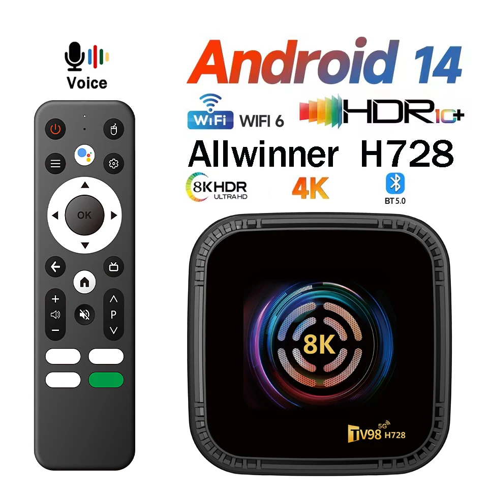 Comprar TV98 H728 Android 14 8K 4K HDR10 + TV Box Allwinner H728 4G 5G Dual Wifi6 BT5.0 Set Top Box reproductor multimedia asistente de voz iptv